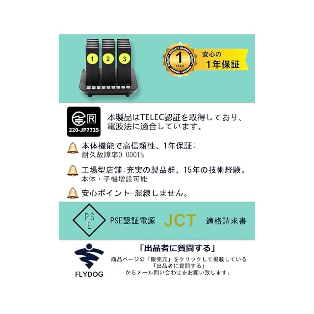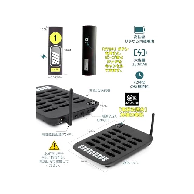 FLYDOG 呼び出しベル 飲食店【電波法適合、適格請求書】 呼び出しベル ワイヤレス 業務用 呼び鈴 呼び出しチャイム 呼び出しブザー 業務用呼び出しベル 呼び出し機 呼び出しボタン 居酒屋 飲食店 コードレス 無線 病院 受付 (1台送信機+10台收信機, 呼び出しベル)(18QMNK-10)