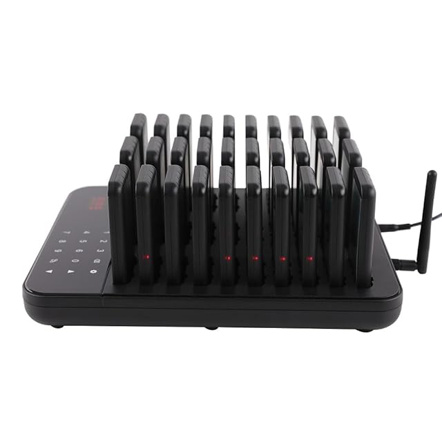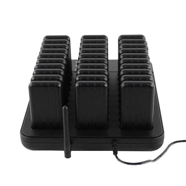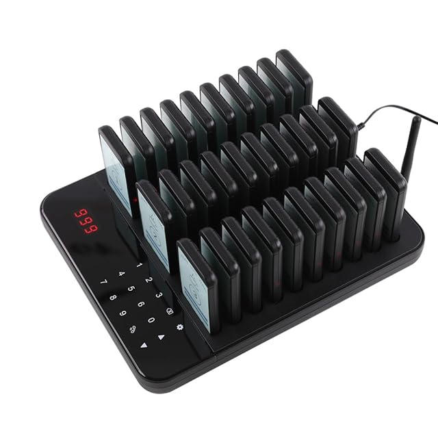【卓越したパフォーマンス】-レストランポケットベルシステムは、998チャネルワイヤレスタッチキーボード送信機と30のポケットベルで構成されています。お客様は列に並んで待つ必要はありません。社交的な距離を保ち、仕事の効率を高めます。キーボードを押すとブツブツと音がして震えます。