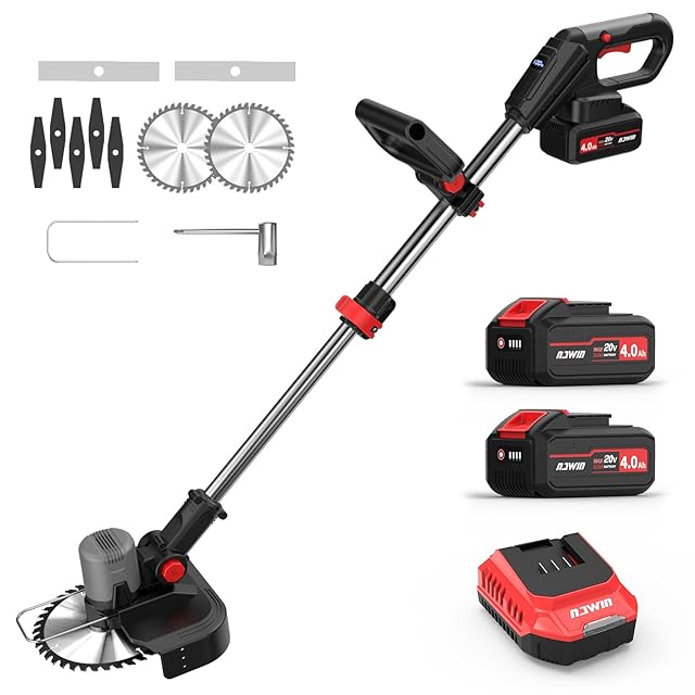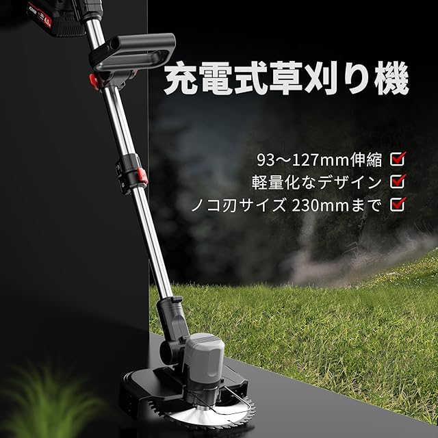 ナウィン 充電式草刈り機 ブラシレスモーター搭載 20V 4.0Ah大容量バッテリー2個付属 伸縮式(93-127cm) 最大9インチ刃対応 芝生/雑草/畑作業用 静音設計 軽量 電動草刈機 家庭用/農園用 (9インチ式)