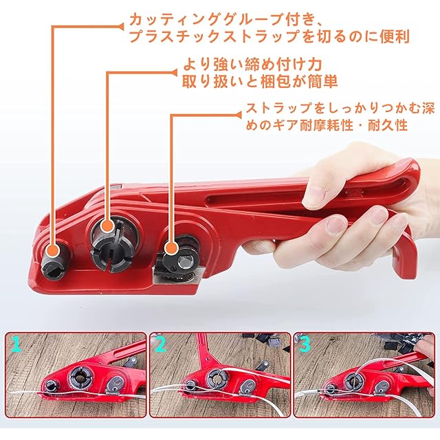 【より良いストラップ効果】テンショナーがプラスチックベルトを回転させ、負荷張力が120kgに達し、より良いストラップ効果を実現します。