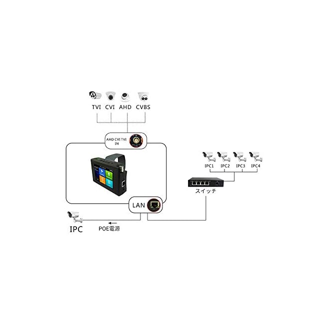 監視カメラテスター同軸HD 4.0、8MP TVI、CVI、AHDカメラ画像テスト、同軸ビデオコントロールとメニューコールをサポートし、カメラ、ビデオ、ズーム、再生をサポートします。