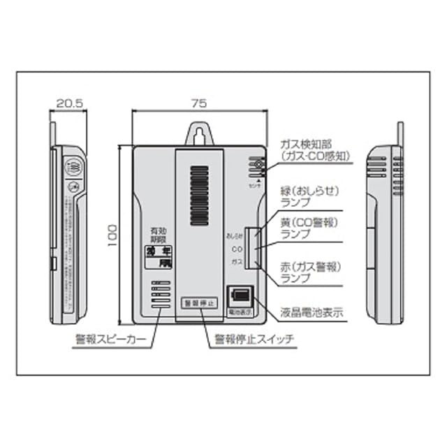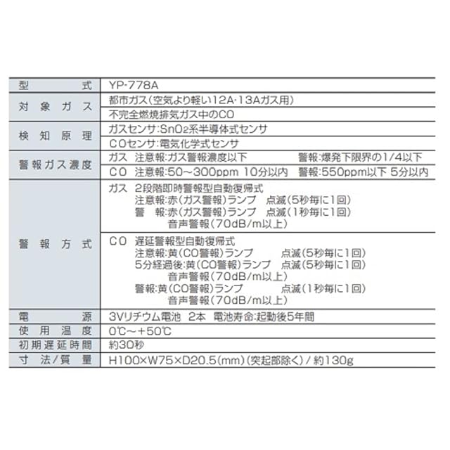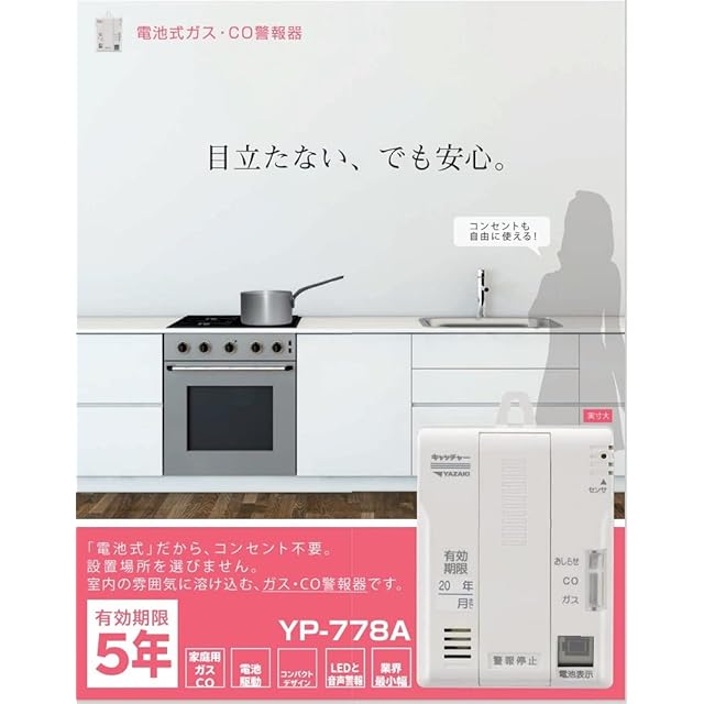 YAZAKI YP-778A 都市ガス用電池式ガス・CO警報器 矢崎エナジーシステム製 12A、13A ホワイト