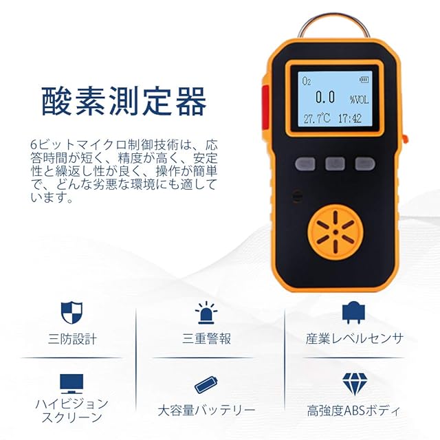 【酸素ガス検知】酸素(O2)ガスを検出するためのポータブル検出器。周囲の環境中のO2ガス濃度を監視することができます。注意:1.酸素センサは設置できません。 酸素測定器の高警報値と低警報値しか設定できない。2.酸素検出器は高圧または負圧環境では使用できず、通常の大気圧でしか使用できない。