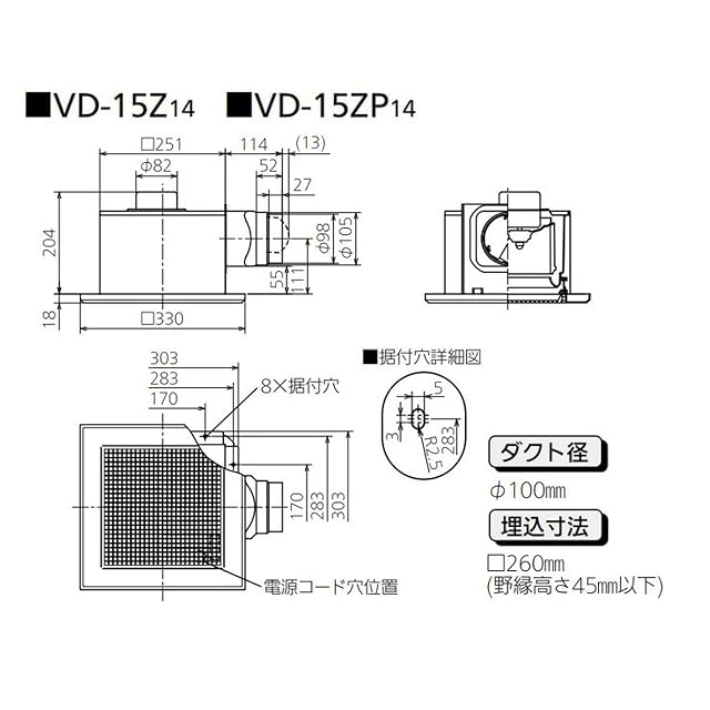三菱電機(MITSUBISHI ELECTRIC) 天井埋込形換気扇 低騒音 VD-15Z14