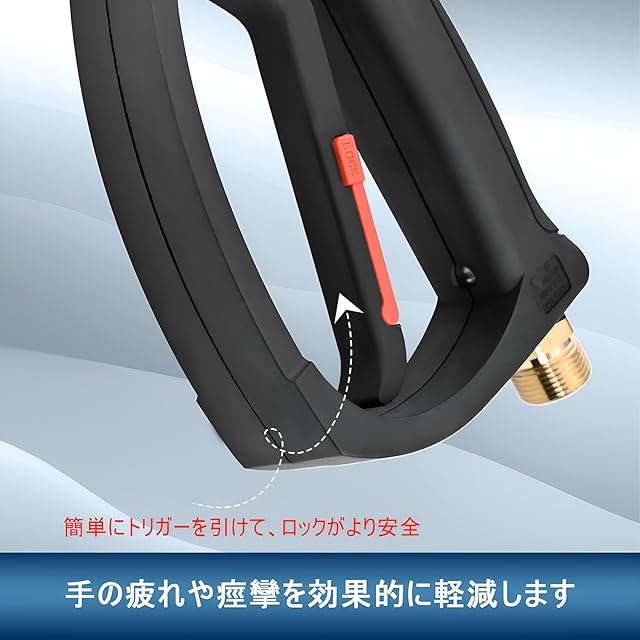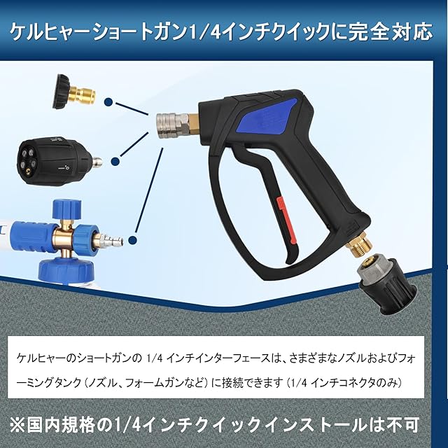 ケルヒャーガンショート本体は従来よりも延性が向上し、応力耐性が向上した工業用プラスチック製です。洗車ショートガン内部は高品質の真ちゅう製で、漏れがなく、4080PSIの圧力まで使用できます。