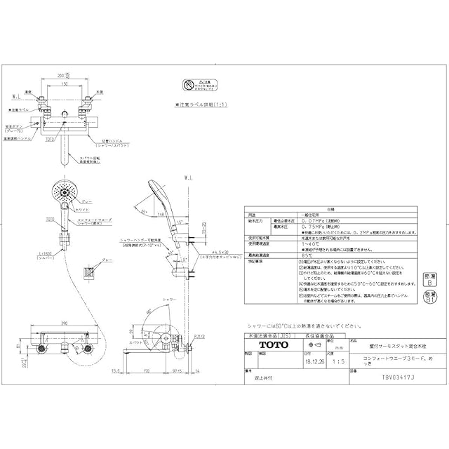 最低必要水圧0.05MPa(流動時)/最高水圧0.75MPa(静止時)※快適な使用には0.2MPa程度の圧力を推奨
