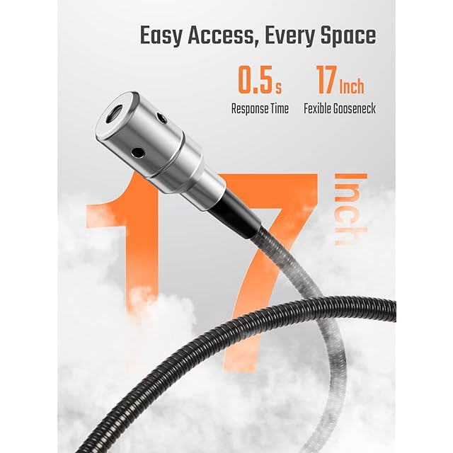 「曲げられるグースネック、簡単に見つけられる」17インチのグースネックを備えたPT520A+は、給湯器、乾燥機、キッチンコンロ、暖炉、プロパングリルなど、手の届きにくい位置でのガス漏れを簡単に検出できます。 長くて曲がるセンサーチップにより、近づきすぎずにガスレベルを測定できます