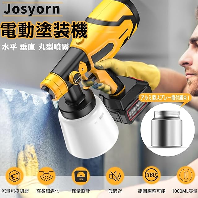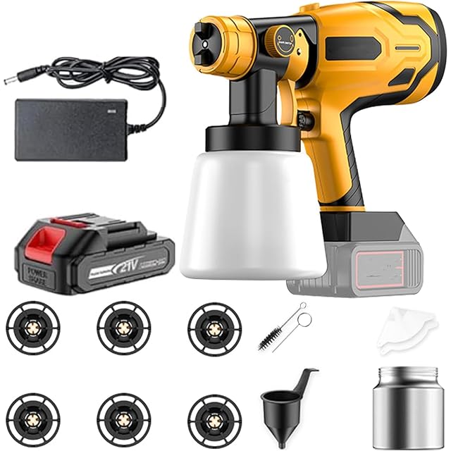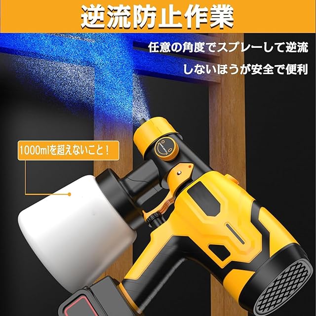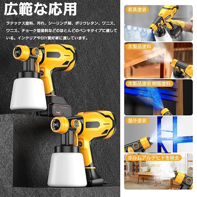 【電動・コードレス塗装ガン】この電動スプレーガンは21V 1.5Ahの大容量バッテリーを使用し、2Hを充電するだけで、約25-35分間使用し続けることができます。マキタ18Vリチウムバッテリー対応可能、十分に作業できます。電源の確保やコンプレッサーの準備が不要で、配線の制約がなくなり、屋内外での使用に便利です。電池式のスプレー塗料は、有線のスプレー塗料よりも強力なスプレー力があり、スプレーの効率が高く、塗料の安定性が高くなります。また、ブラシやローラーでの塗装よりも時間と労力を節約できます。 人工力学的な設計で、持ち心地が良く、長時間使用しても疲れない。 DIYや塗装フェンス、内壁、手工芸品、橋、家電製品、木製家具、テーブル、椅子、キャビネット、手工芸品などに非常に適しています。