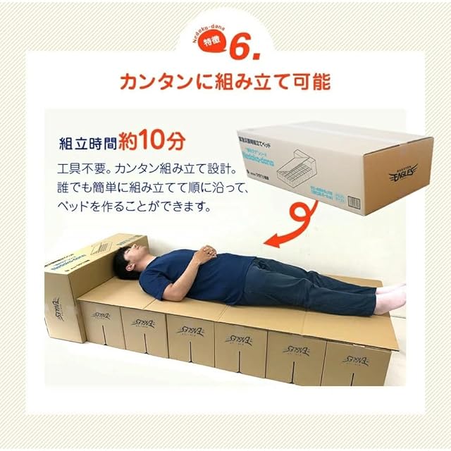 タチバナ産業 楽天イーグルスロゴ入り Nedoko-Dana (ネドコダナ) 非常用ベッド [緊急災害時用組立てベッド] [企業も採用] ダンボールベッド 組み立て式 コンパクト収納 防災グッズ 在宅避難 日本製 帰宅困難者対策