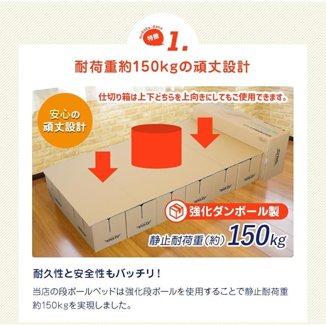 強化ダンボール製のため、大柄な成人男性でも問題無くご使用いただけます。