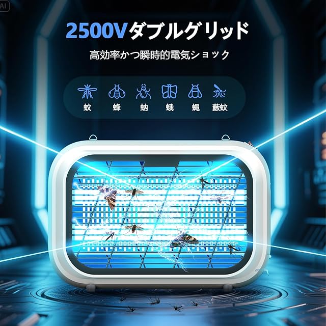 【薬剤不要・無臭で安全な電撃蚊取り器】体温やUV光で虫を誘引し、電撃で瞬時に駆除。薬剤・煙・匂い・騒音なしの安心設計です。物理的な方法で蚊を除けるため、小さなお子様やペットのいるご家庭でも安全に使用できます。プロの飲食店でも採用されている高性能モデルで、リビングや寝室、オフィスなど様々な場所に最適。薬剤に敏感な方にもおすすめです。