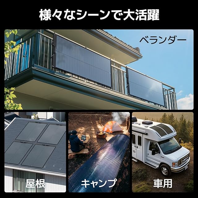 5.【軽量な太陽光パネル】重量はわずか2.7kg、厚さ1.5mm。キャンピングカーに設置して、車高が高すぎたり重量がかかったりして困ることもなく、車検も簡単に通過できます。悪天候であっても簡単に収納可能。