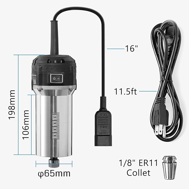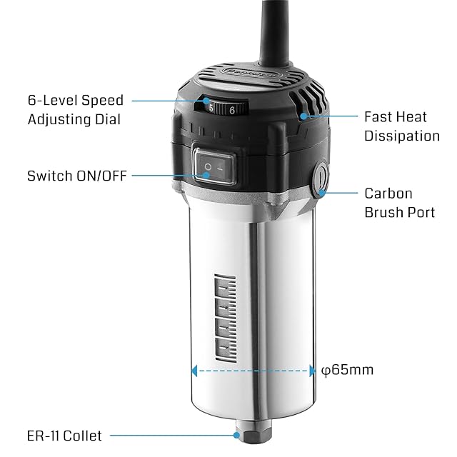 Genmitsu 710W コンパクトルーター 65mm 直径、6 可変速度パームトリマールーター、ER11 コレット & 4 カーボンブラシ付き、CNC マシン用スピンドルモーターアップグレード