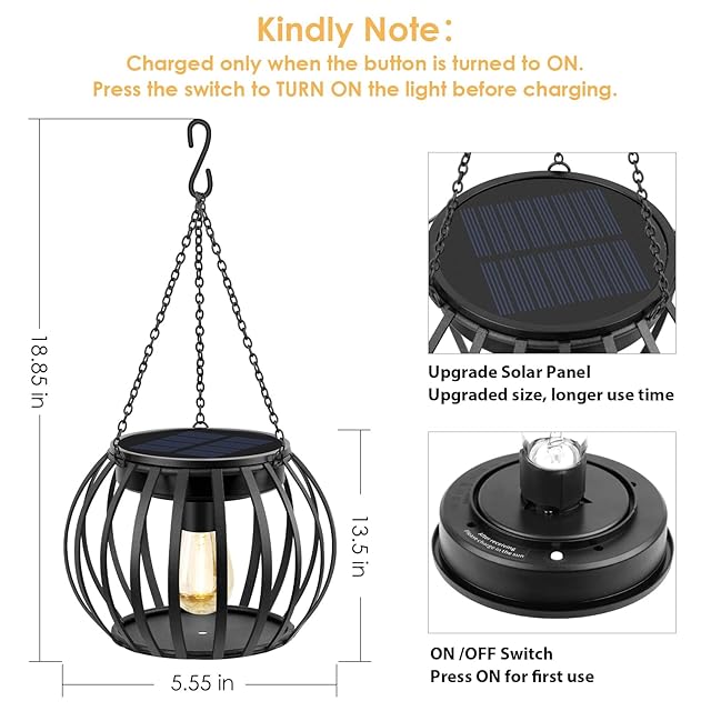 【洗練されたデザイン】サイズ:7(長さ)*7(幅)*5.5(高さ)インチ。チェーン:17インチ。屋外太陽光灯のデザインは独特で、室内/屋外装飾に適している。それはあなたの庭を昼間とは全く異なる光景にすることができます