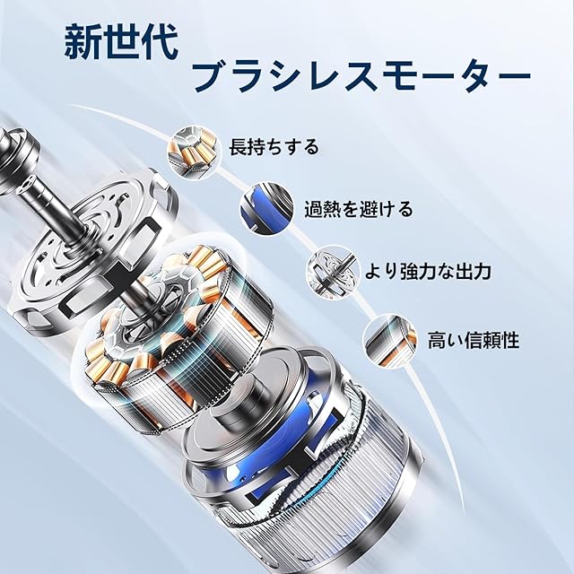 【大容量バッテリー&日本仕様充電器|長時間稼働&安心設計!】 付属のリチウムバッテリー2個で、連続60分稼働を実現。充電器は100V-240V/50-60Hz対応のため、関東・関西の電圧に完全適合軽量730g設計で女性や高齢者でも楽に操作可能。コンパクト収納設計のため、スペースを選びません