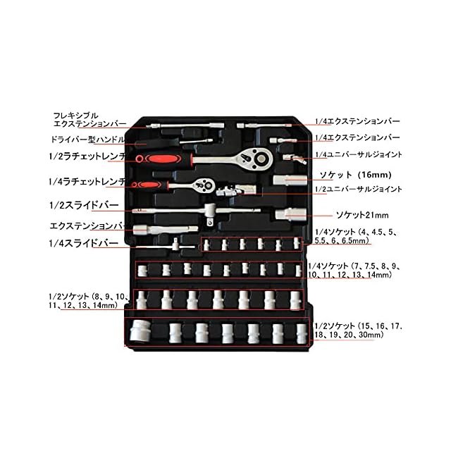 「収納ケース付き&携帯便利な工具セット」レンチ・ソケット類はクロームバナジウム鋼使用で完全熱処理済です。持ち運びやすさと、開けば一目瞭然の使いやすさです。アルミケース付き 家庭でも、作業現場でも最適な商品です。