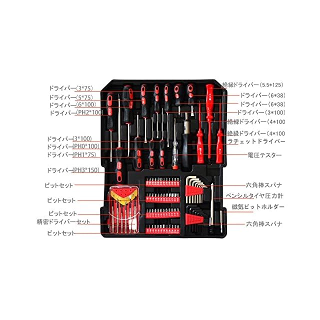 「日々手軽に使用する799pcs工具セット」巻尺、絶縁テープ、モンキーレンチ、ネールハンマー、ドライバー、コンビネーションレンチ、ラチェットレンチ、ソケット、六角棒スパナ、ペンシルタイヤ圧力計、グルーガンなど。家庭工具として、一本あると便利です。