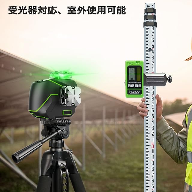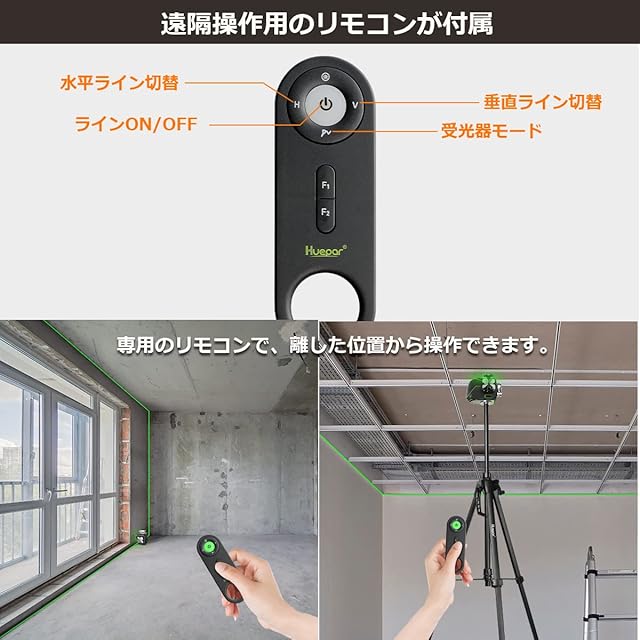 【ドイツから輸入社製グリーンレーザー&屋外パルスモード】:弊社のクロスラインレーザーは業界最大手のドイツ社製の最新グリーンレーザーユニットを採用し、温度変化に強く、市面より高い安定性を備えた明るいレーザーが照射できます。 同じ電力出力で、緑色レーザーは赤色レーザーの 2 倍明るく、動作範囲は最大20M、精度は 10メートルで±3 mm以内です。 Huepar ライン レーザー受光器を組み合わせして、パルスモードを切り替えると屋外 でレーザー照射範囲を最大50メートルまで拡張できます。