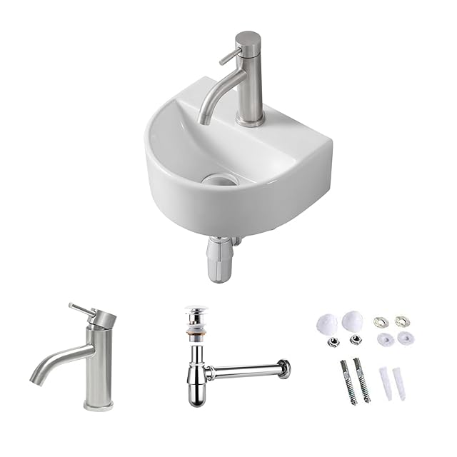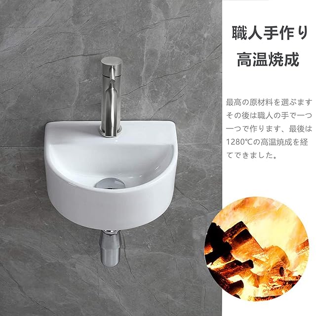 【JOMOWN混合水栓付き】 手洗い器 壁掛け 手洗器 オシャレ 洗面ボールセット 小型洗面ボウル ミニ型 洗面台 手洗いボウル 壁付け型 陶器 トイレ 手洗い台 半円形
