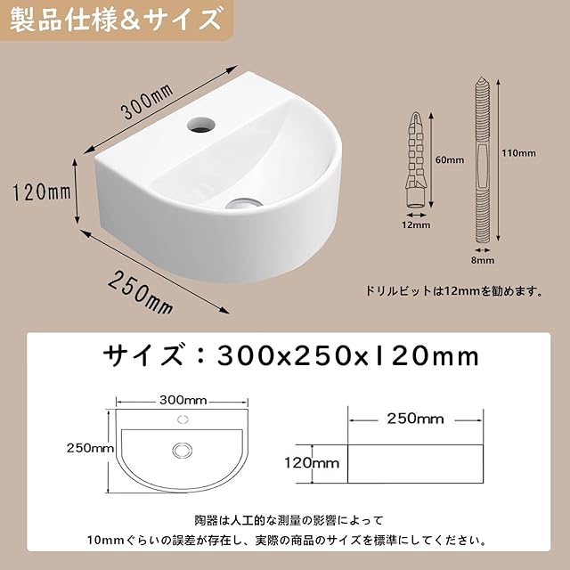 ♥【規格&取り付け説明】:小型洗面ボウルのサイズ:300*250*120mm、重さ:6kg、排水口径:48mm。蛇口の取り付け穴径:35mm、取り付けホースの規格:G1/2ナッツ(φ21mm)、ドリルビットは12㎜を勧めます。 この洗面シンクはホテル、家、会社、ビル、キッチン、浴室、トイレなどに適用します。洗面ボウルと排水金具は設置が簡単なので、取扱説明書どおりに設置すればでいいです。おしゃれなデザインを与えています。