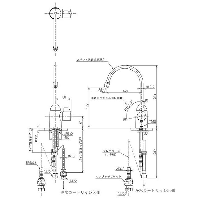 TOTO浄水器およびTOTOアルカリイオン水生成器専用水栓。