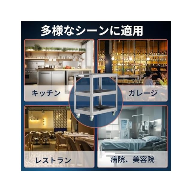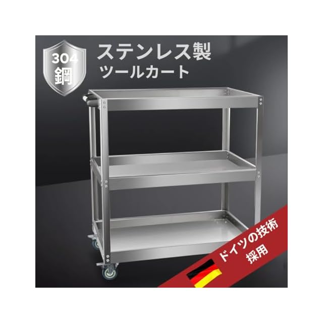 MISHIP ステンレス製ツールカート 工具ワゴン 整備用 ツールワゴン 3段 耐荷重200KG 幅67×奥行37×高さ75CM 回転キャスター付き ブレイキー付き 工具カート 工具台車 DIY 自動車用 ガレージ キッチン 作業台 倉庫 研究室 病院 美容院