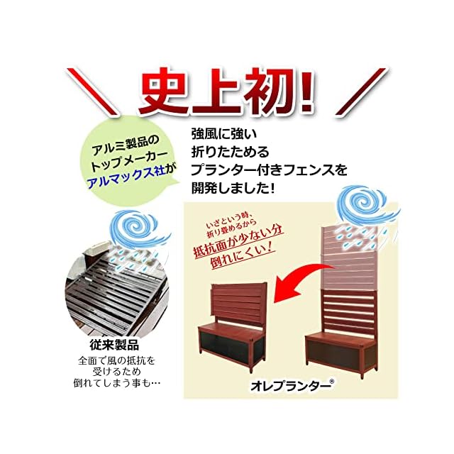 ALMAX アルマックス オレフェンスプランター アルミ たためる 座れる 蓋つき プランター フェンス 90×150 (木目調ナチュラルブラウン) 目隠し ラティス DIY OFP-0915NB