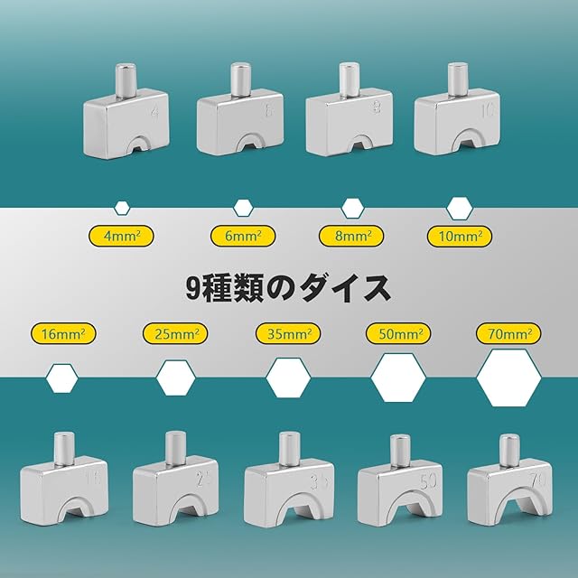 「9種類のダイス」4、6、8、10、16、25、35、50、70mm²