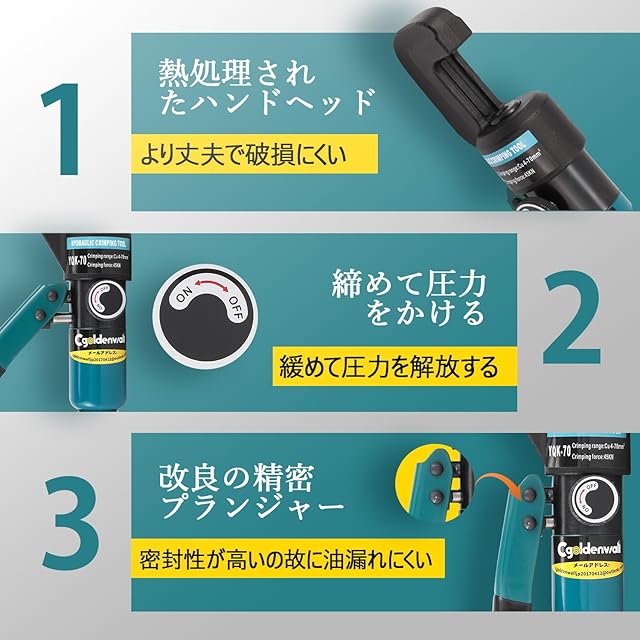 CGOLDENWALL 油圧圧着ペンチ 圧着端子用圧着工具 9種類ダイス付き 4~70mm²裸圧着 80KN最大出力 銅/アルミ端子 丸型ワイヤーロープスリーブ リングスリーブ 15番低凝固性耐摩耗性作動油 日本語取扱説明書 [並行輸入品]