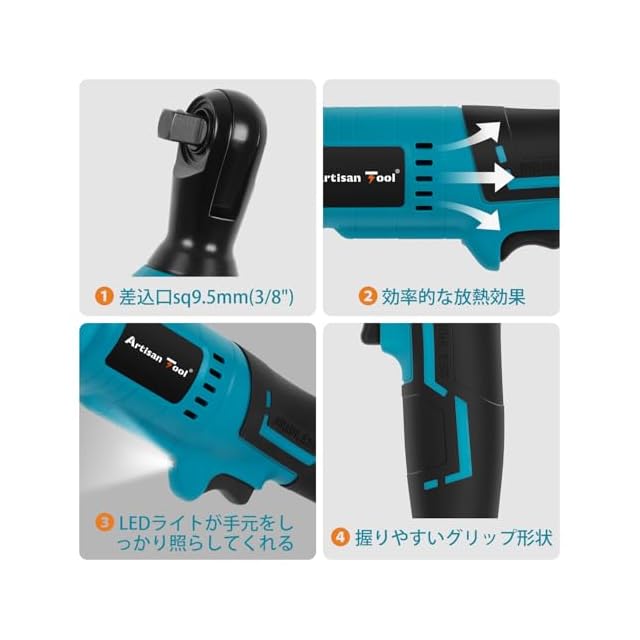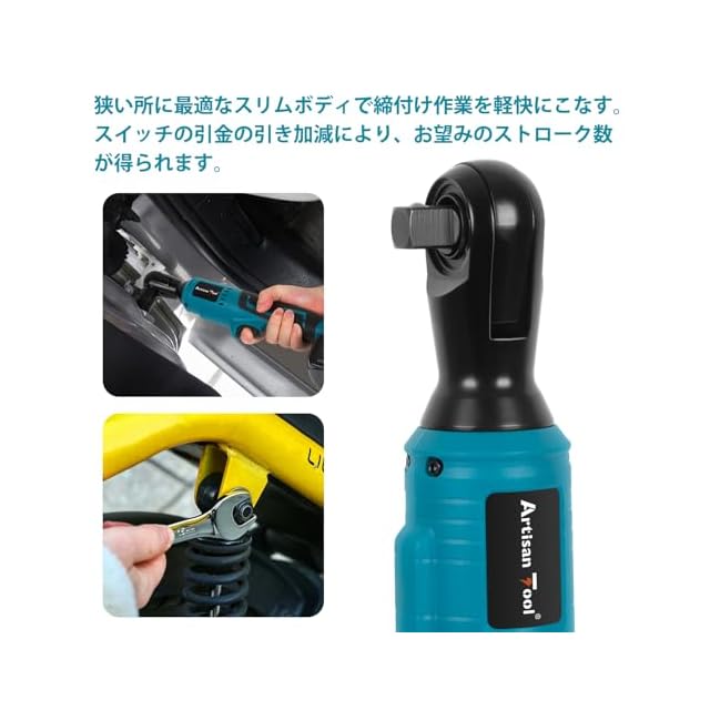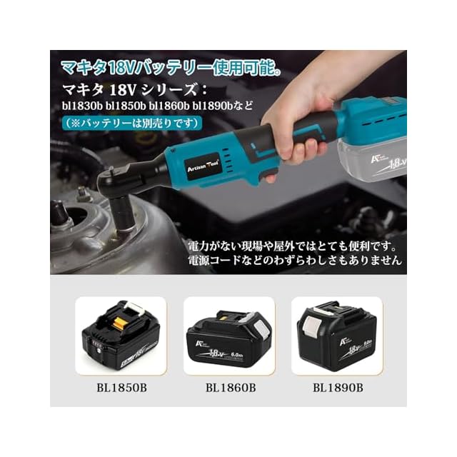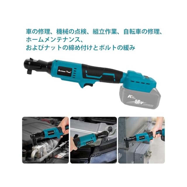 アルチザンツール【日本ブランド】 電動工具 ラチェットレンチ ドライブ角3/8インチ ソケット 締め付けトルク最大 40 N·m コードレス ブラシレス 電動 マキタ互換品 18Vバッテリー 対応 バッテリー 別売