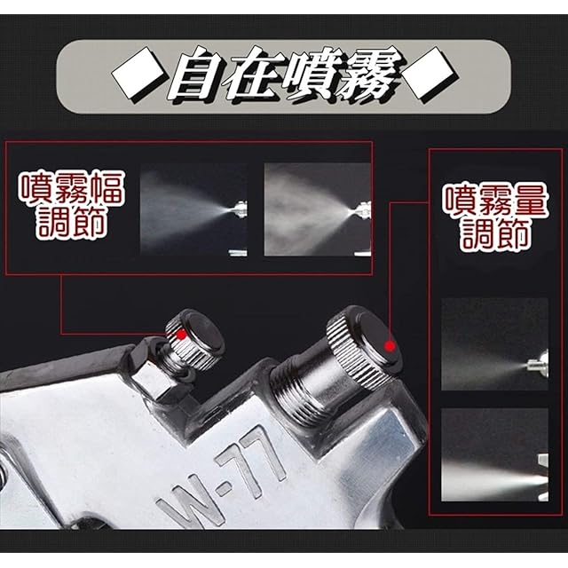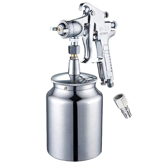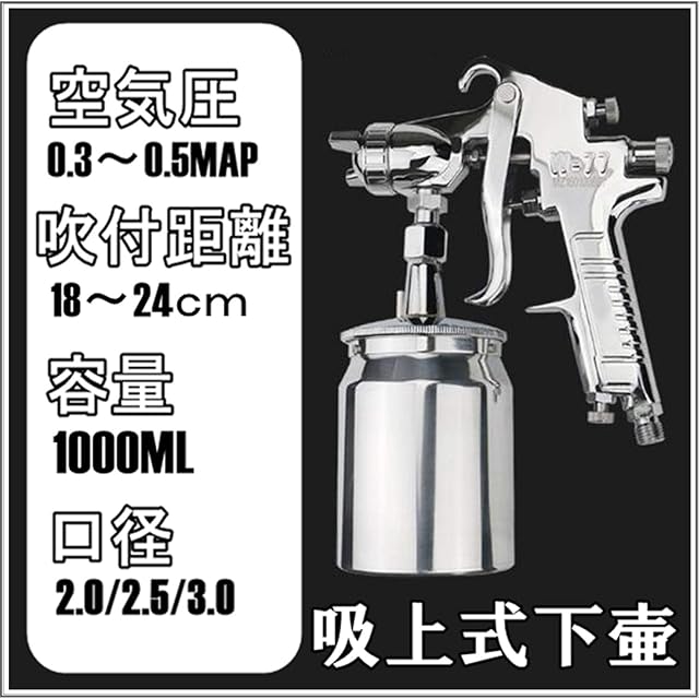 株式会社サザンウインド 上位モデル W-77 中型 エアー スプレー ガン 吸い上げ式 タンク 容量1L (口径3.0mm) シルバー・口径3.0mm