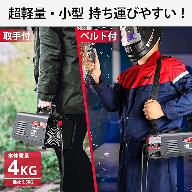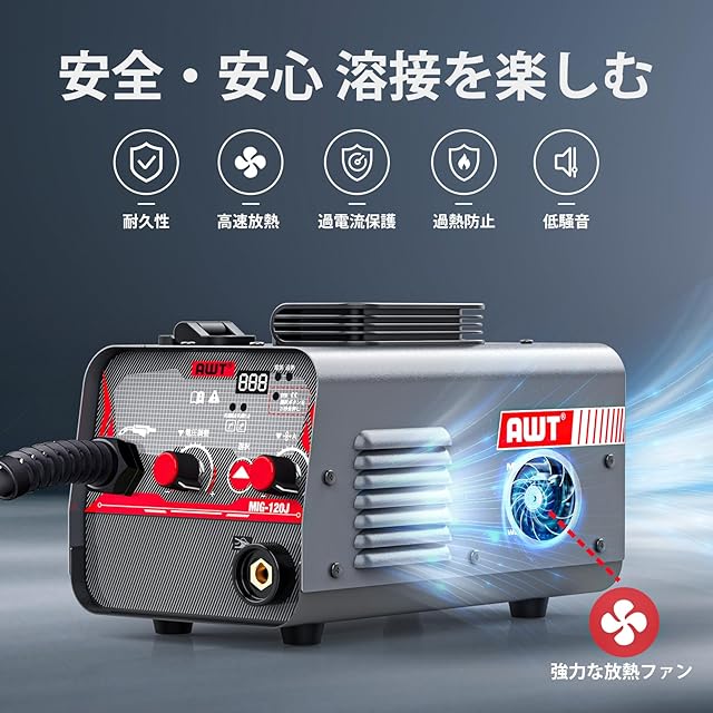 AWT 半自動溶接機 100V ノンガスMIG溶接 120A 軽量小型 家庭用 【日本語取扱説明書付き】 インバーター直流溶接機 MIG-120