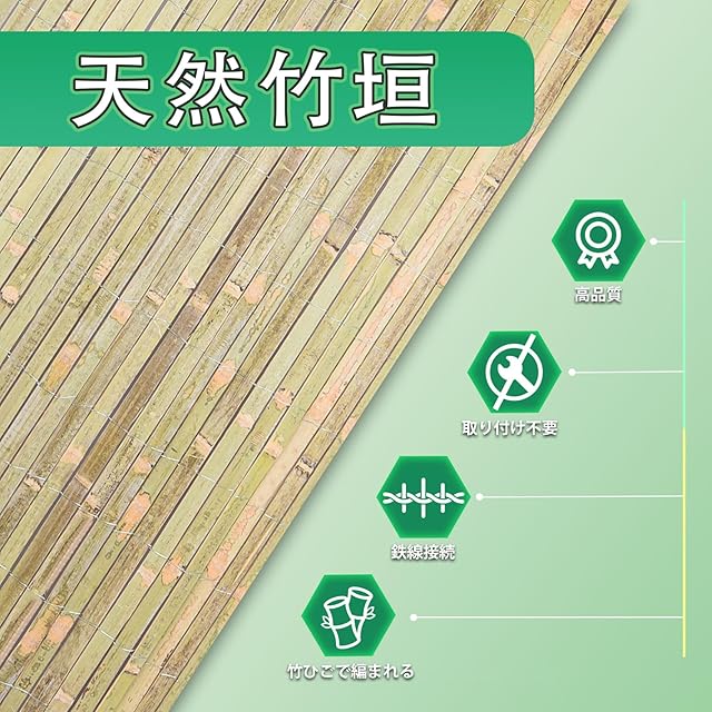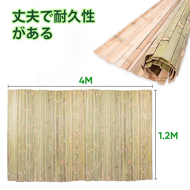 高品質:竹垣フェンスは天然竹から選ばれています。中緯度のモンスーン気候に成長の高級竹を使用しています。毎枚フェンスはきれいで、強く、まっすぐです。竹スラットフェンスは防水処理と熱処理が施されていたので、耐久性があり、何年に長持ちします。