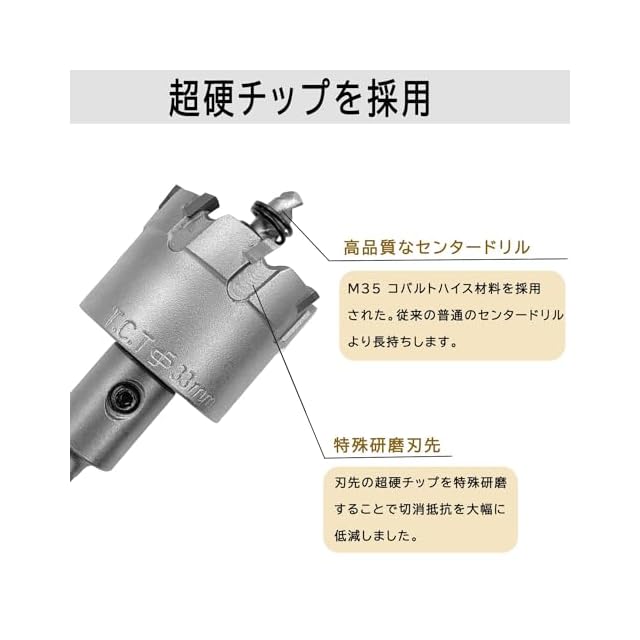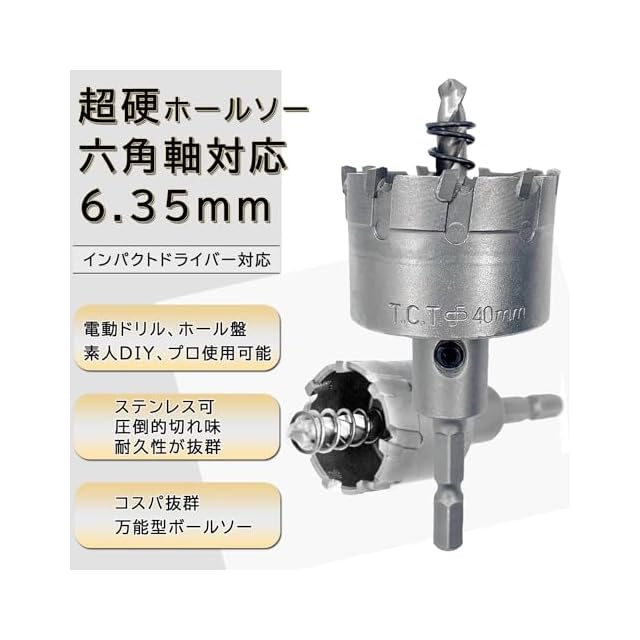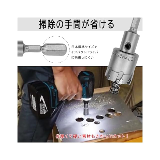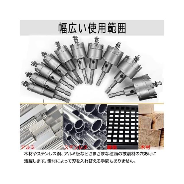 【適用範囲】家庭でのDIY、配管工事、電気工事な ど様々な穴あけ作業で使われています。ドアやキャビネットのロック、つまみ、または机などへの大径サイズの穴開けに最適です。ステンレス鋼、鉄パイプ、高合金鋼、板金など、さまざまな装飾・工業用途に簡単にガイドできます。