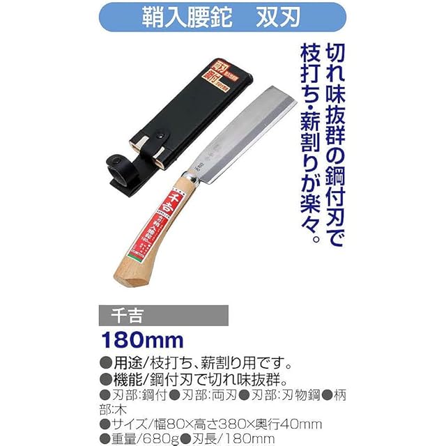 千吉 鞘入腰鉈 双刃(両刃) 全長380mm(刃部180mm) 日本製