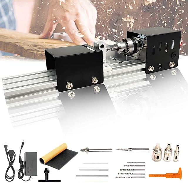 kilogorge 旋盤機 ミニ 木工旋盤 ミニグラインダー 研磨機 旋盤機 金属用 彫刻機 ミニポリッシャー 旋盤 両頭グラインダー 多机能小旋盤 高精度 耐久性 DIY手作りセット旋盤 研磨研磨 仏珠打孔 ミニチュア彫刻 小型カット ミニ旋盤 パワー [ブラッ • クキットB]