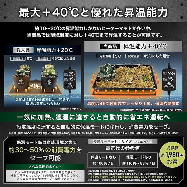 Kaiju Plant 怪獣サーマットLサイズ 室内園芸用 ヒーターマット 85cmx40cm スマート電源対応 デジタルコントローラー (ロング)
