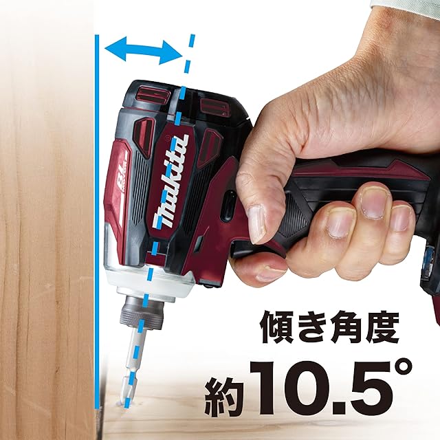 スリムボディで業界最小の傾き 約10.5°※2021年1月現在、マキタ調べ。優れた隅打ち性能でカムアウトを低減。壁際の作業も快適。床に近い位置の作業等にもおすすめ。ビット振れ業界最小「ゼロブレ」。軸受け部にダブル・ボールベアリングを採用。長いビット使用時の振れを大幅に低減。耐久性も両立。