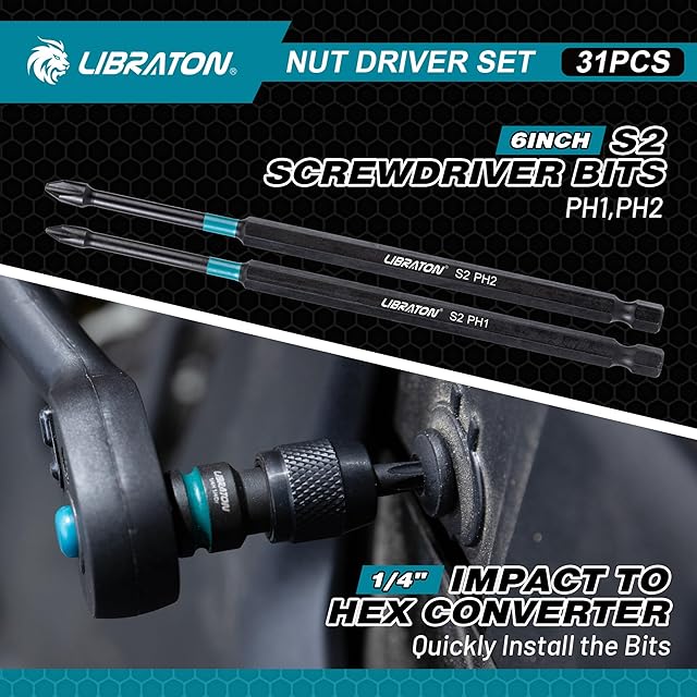 LIBRATON ソケットビットセット 31本セット インパクトソケット インパクトドライバー用ソケット ソケットセット 六角ビットソケット ロングソケット 6.35mm六角軸