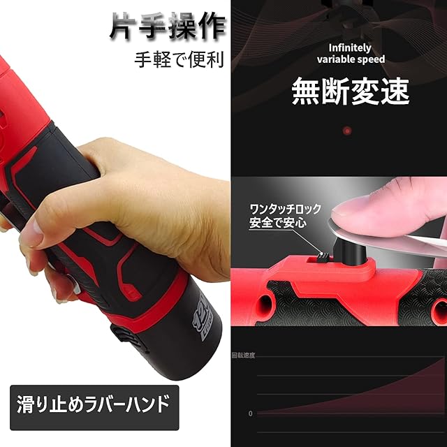 【多機能】1.正逆転レバーの位置を調整することで、ビットの回転方向を切り替えでき、ネジを締め付けるだけでなく、ネジを緩めることも可能です。2.バッテリー残量ランプ付きなので、一目で残量がわかります。3.熱放散のための空気口で、あなたは連続的にしかし、どんな危険なしででもドリルを使うことができます。4.安全で耐久性があります、過電流保護、過電圧保護、過熱保護、充電および放電保護により。さらに、振動制御システムは、低レベルの振動とノイズを維持できるため、快適で静かな作業体験を提供します。5、速攻取り付け、ナットのサイズに対応したソケットを差し込むだけで、すぐ応用でき、工具を使わず、自由に交換できる便利さを持ってます。また、柔軟な設計により、3/8インチは、さまざまなソケットサイズに対応し、ほとんどのナットやボルトを簡単に締め付ける/取り外すことができます。
