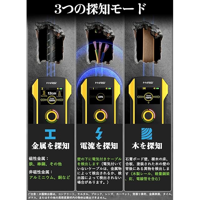 【最新型】最新型の高精度スキャンセンサーが持つことで、間柱センサー、金属探知器及びシールド無しAC線(通電している)の探知器として活用できます。更に従来のタイプと違って、間柱探知機能の方は3つのモードがあって、センサーの知能が大幅アップすることで、間柱の検出がよりスームズになり、新型LCDスクリーン搭載、日本語も設置でき、検出結果もより精確になります。