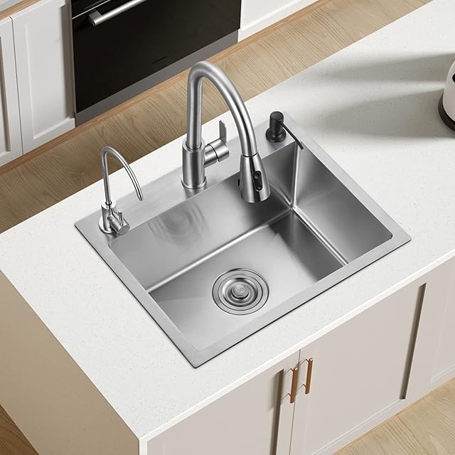【最新ナノ技術を採用】エコ材質、シンクは大きくて深い、汚れを防いで色褪せない、重圧に抵抗して、耐熱性、耐食性、清潔やすくて、磨耗に耐えて、3.0MM厚いシンク:堅くて、大きな水槽のためにカスタマイズされた設計で、変形不可能。