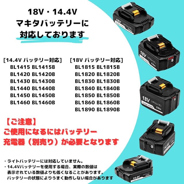 14.4V、18Vマキタバッテリー対応 ※マキタバッテリー対応の互換製品となります