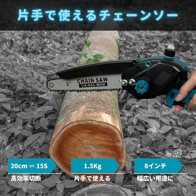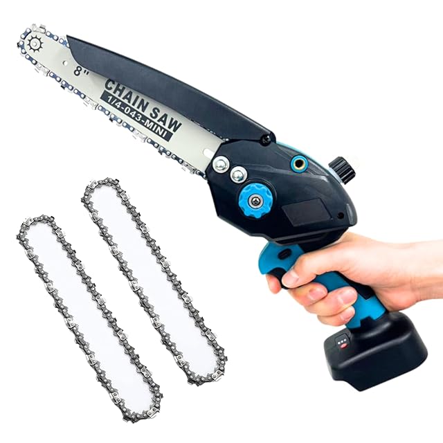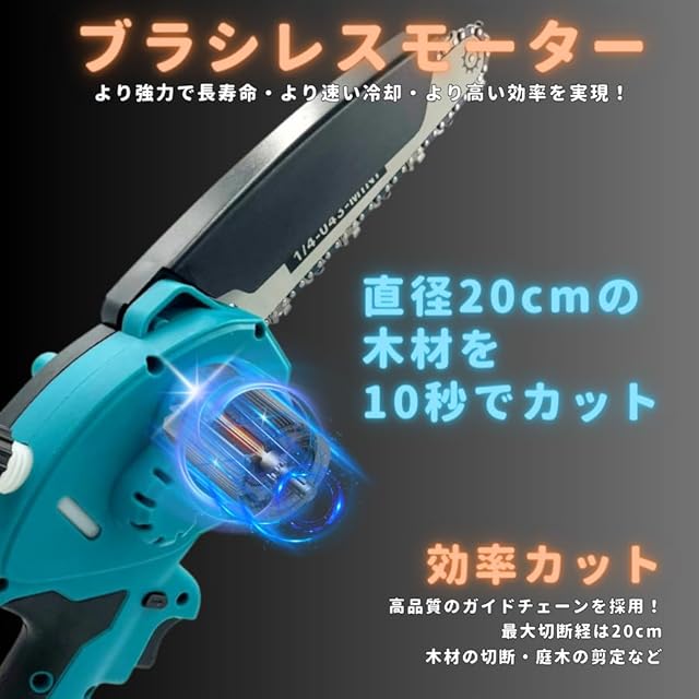 マキタ (Makita) バッテリー 対応 コードレス チェーンソー 8インチ ミニチェーンソー 電動 ノコギリ ブラシレスモーター 自動給油機能付き 14.4V 18V 使用可能 互換 充電式 電動工具 日本語説明書 バッテリー 別売り (本体替刃2本セット(Blue))