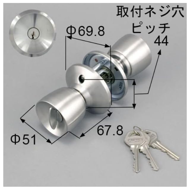 対応メーカー:トステム ( TOSTEM ) 、トーヨーサッシ、立山アルミ他、勝手口ドア、アパートの玄関ドアなどの ドアノブ(握り玉)+ 箱錠セット。
