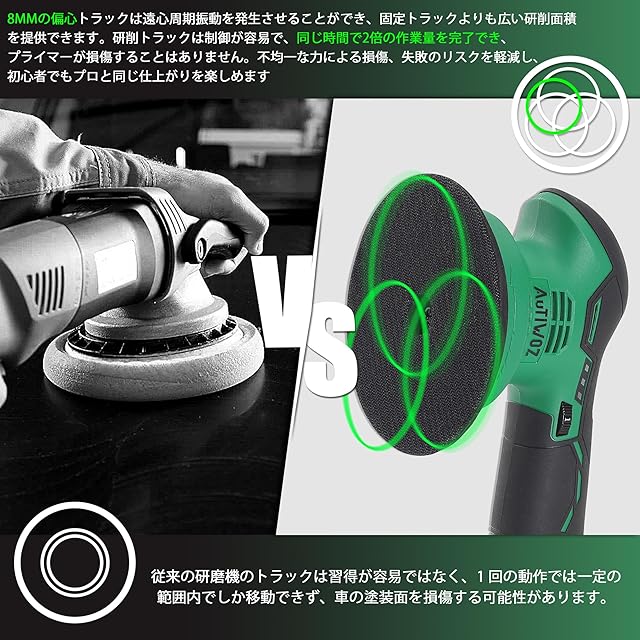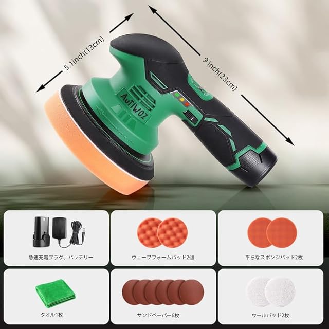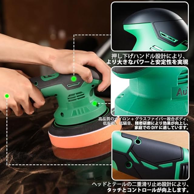 Autiwoz ポリッシャー ダブルアクション ミニ コードレス 日本車の塗装特性に適合 小型 軽量1.09kg 2.0Ah大容量バッテリー2個付属 6段変速(2500-5000RPM) 150mm広域研磨 充電式 車・バイク・家具・金属錆落とし用 日本語説明書 PSE/CE認証