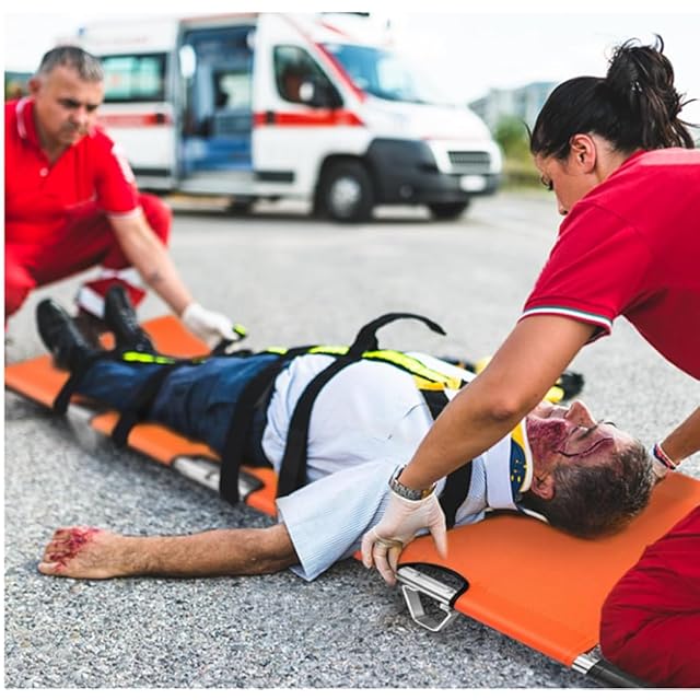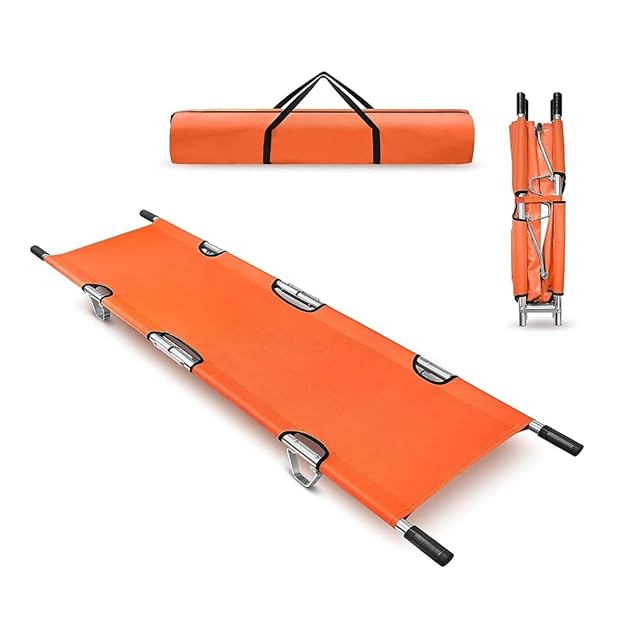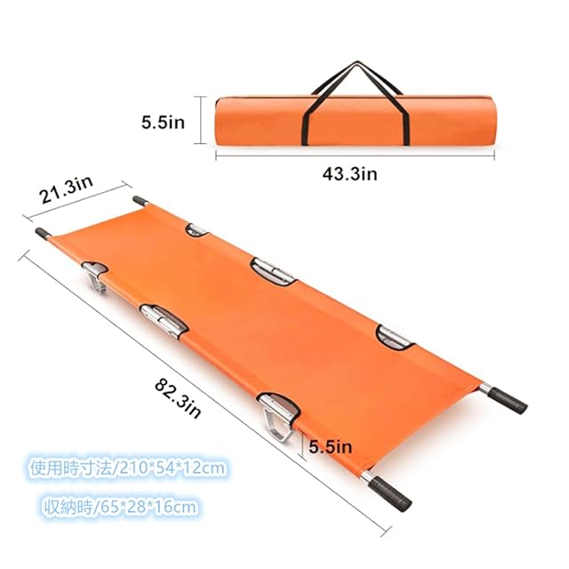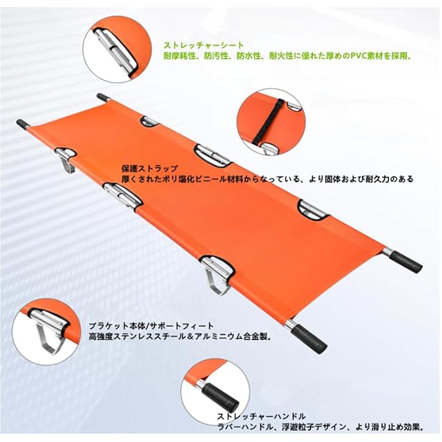 OLMMT 折りたたみ 担架 スチール製 ロングサイズ 防水 簡易担架 コンパクト 2つ折り ストレッチャー キャスター ベルト付き 救護用 搬送 介護用品 緊急 非常用 搬送 ベルト付 福祉 施設 老人ホーム コンパクト 介助用 簡易 滑り (A-orange)