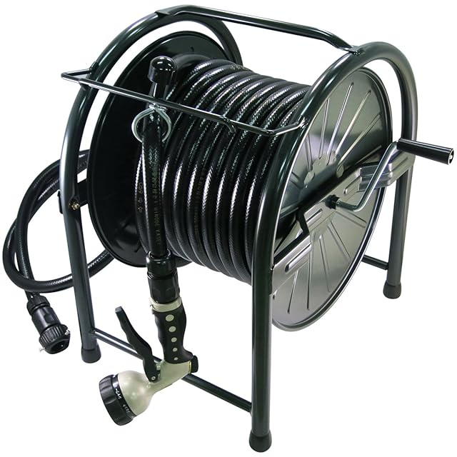 日之出化成 耐圧農業ホース30m付き スチール リールセット 15x20mm ブラック