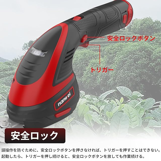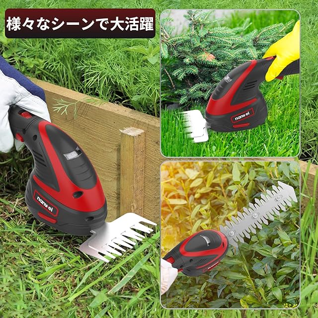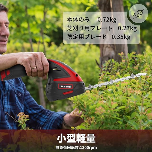 NANWEI 芝生バリカン 12V充電式ヘッジトリマー 2WAY芝刈り機 コードレス 2.0Ahバッテリー2個付き ヘッジトリマー刈幅180mm 生垣バリカン 草刈り 植木剪定 園芸