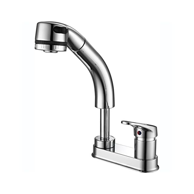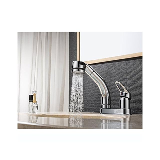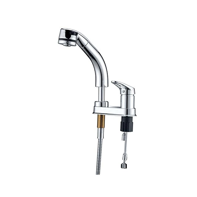 洗面台蛇口 混合水栓 洗面用シャワー水栓 台付き(2穴) シングルレバー ホース引き出し式 整流 シャワー切り替え可能 取付穴経25-36mm KFPOY004